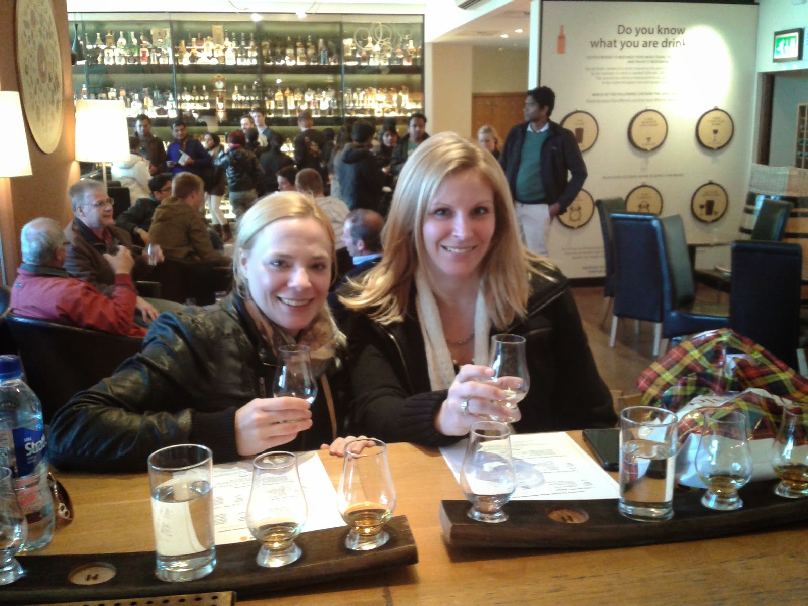 The train from London to Edinburgh is a little over 4 hours, and while we were beyond exhausted on the outset, as we got closer to our destination, excitement and anticipation took over. We were told repeatedly all weekend long that we had basically landed the jackpot when it comes to Scottish weather, so when we exited the train station, the sun was blazing and the skies were clear. Most of us already know that I have the worst sense of direction in the history of mankind, so thank GOD for my cousin. She has a great radar and a keen memory for directions so that, along with lots of free wifi and cell phone screen shots, made it possible to get around. We headed to our first b&b of the weekend, a quirky little establishment a bit further outside the center of town. Later on we realized that the buses make it very quick and easy to get around except for the fact that the schedules and timetables are not reliably posted online so we were never really sure when or if a bus would show up. Once we dropped our bags at the b&b and freshened up, we immediately jumped into our adventures. First stop? Edinburgh Castle, which you can see from almost anywhere in this historic city. It was a lovely walk inside and around the castle, and gave us time to jaunt down the Royal Mile and grab a sandwich before our scheduled whisky tasting at the Scottish Whisky Experience, just a stone's throw away. We really didn't know what to expect, and it turns out this place is rather touristy, but it's a great opportunity to taste different whiskies rather than just one kind at a distillery. Best of all? The first part of the tour is like a Disneyworld ride, where you climb into a massive whisky barrel and are carted around following a ghost of whisky past, present, and future or some such thing. I was obviously thrilled, given my penchant for all things absurd. They did a really good job of explaining the four main regions of whisky-making in Scotland, and depending on what tour you paid for, get to try one whisky during the tour, or like us, 4 more after too! They also let you keep your whisky tasting glass, a nice little souvenir to bring home.