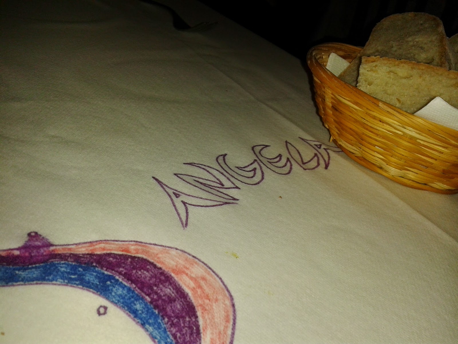 When we finally emerged from our beauty slumber, we realized food was an urgent agenda. Cousin had discovered the name of a restaurant recommended through a blog post she read online. She made a quick call, got us a reservation, and we were off! The name of the restaurant is La Cucina Garga, and we later found out it had been featured by Guy Fieri on the Food Network. The decor was cute, the work of many local artists hanging on the walls, and the tables were decked out in white paper table cloths with a cup of markers making up part of the center piece. Guests are encouraged to create their own masterpiece and apparently true artistic gems could be chosen to hang up on the walls. We shared a beautiful salad, a delectable plate of tagliatelle with orange and mint and brandy sauce, and finally a breaded veal chop. Because we are the infamous Hot Blonde Cousins Abroad, we ended up being the last table at the restaurant, and were therefore approached by the chef himself, who offered us a free vile of Italian vodka each to wash down our delicious desserts. He then invited us to join him and another lingering couple at the bar for post-dinner cocktails. The couple was a hilarious American duo, so we all had a merry time talking about the restaurant, Italy, and all of our crazy antics.