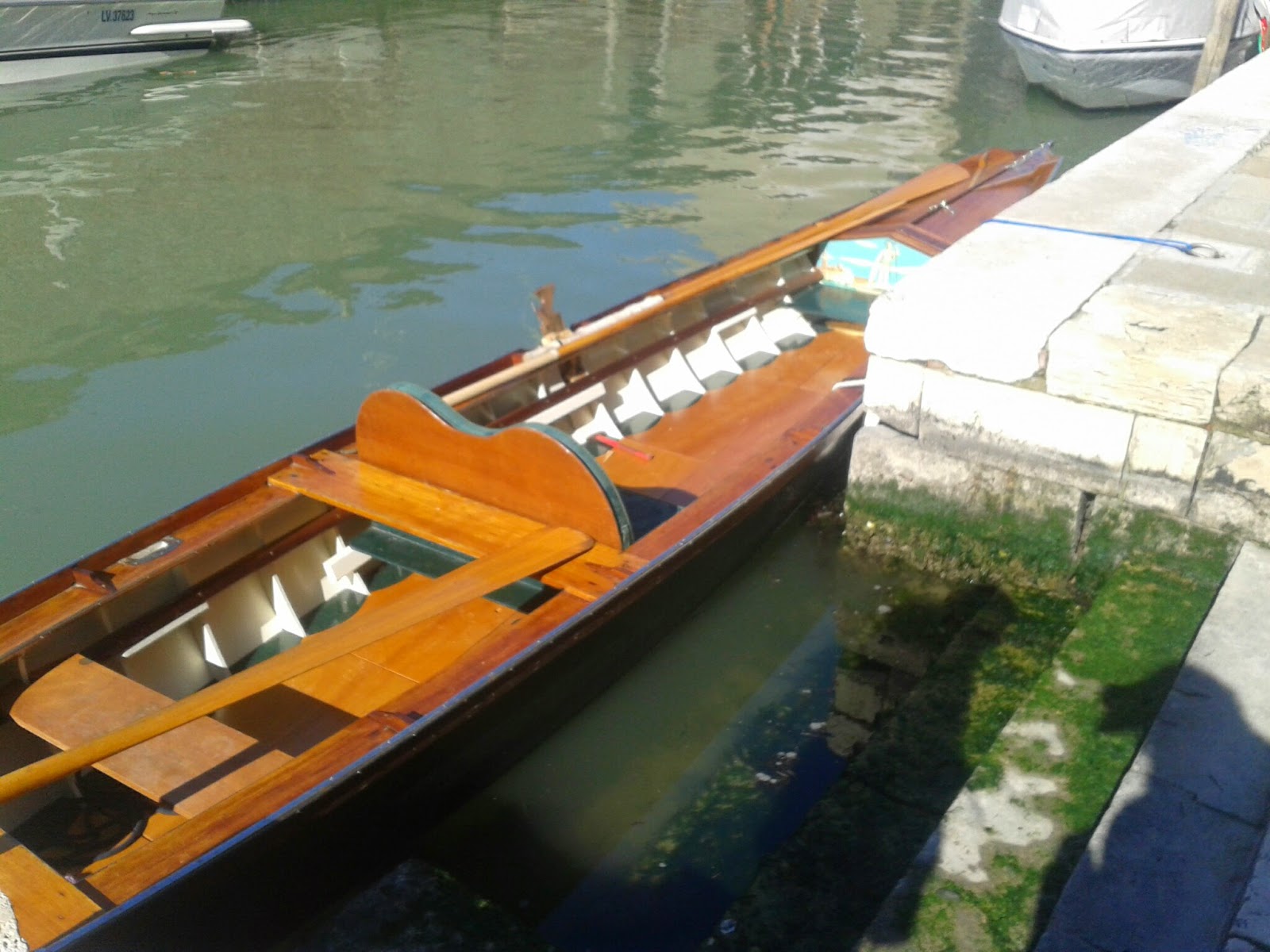 Saying goodbye to any city is never a pleasant experience, but when you can do it with gusto and a gondola, it really isn't so bad. Our Italian boating lesson was postponed because of the wind, so we woke up bright and early for our rescheduled time slot. Thank goodness the wind had tamed itself, so we were able to meet our guide and begin our adventure through the canals. From what I learned, the real skill lies in the hands of the person steering the boat in the back. This requires balance and focus, so as not to fall over into the murky water or ram into another boat channeling through the waterways. My cousin and I were therefore instructed how to row from the mid-boat position, hampered with much less responsibility or prestige. Either way, I had my boat hat on, the sun was shining, and I had no problem taking my turn at the helm. Once we got to the open lagoon, we were allowed to try rowing from the star spot, when I realized just how hard it would have been amidst the canals. Even with all of the open sea around us, when any speed boats floated by in the distance, the waves made it infinitely more difficult not to go splashing overboard. While balancing my little legs with a view of Venice on the horizon, I felt like a true goddess of the seas.